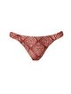 Tanga lateral média estampada. O modelo possui cobertura média, recortes de elástico nas laterais, costura de zig zag largo por toda a peça e detalhe de metal Ouro Fosco nas costas.