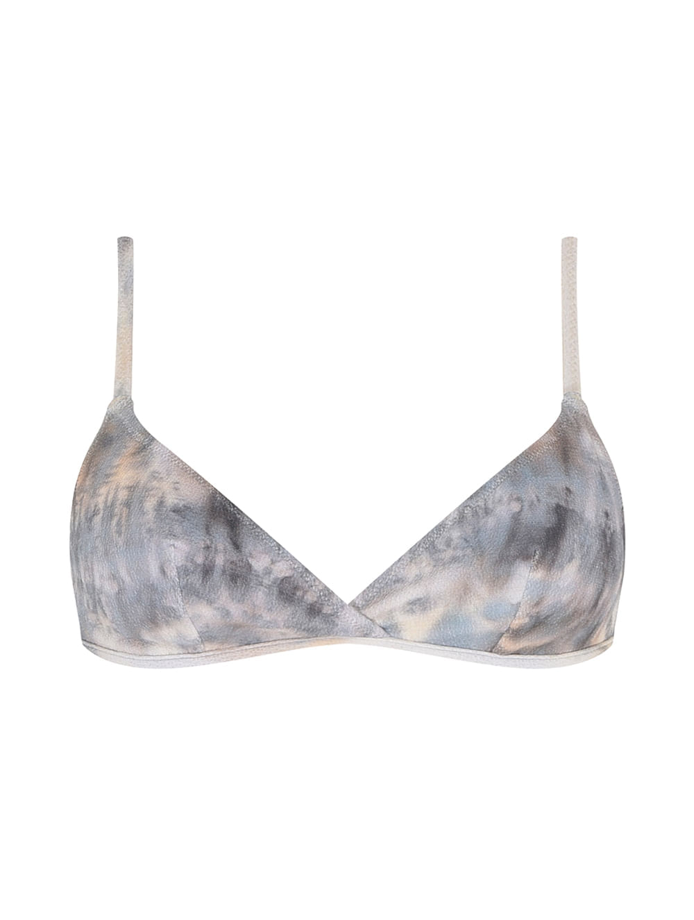 Top triângulo estampado. O modelo é trabalhado em tecido com textura. Possui bojo removível, cobertura pequena, alças fixas com regulagem e amarração nas costas.